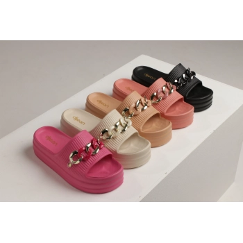 Chinelo Slide Feminino Dijean 288 Pingente de Luz Nude