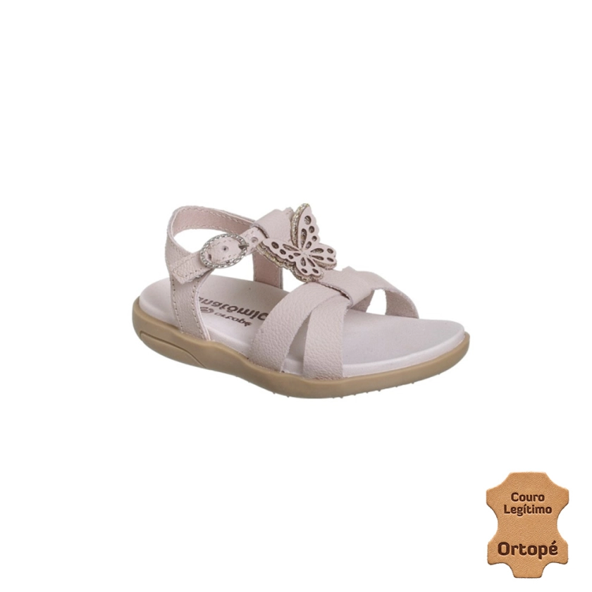 Sandália Infantil Feminina Ortopé Autêntica Couro Borboleta Nude