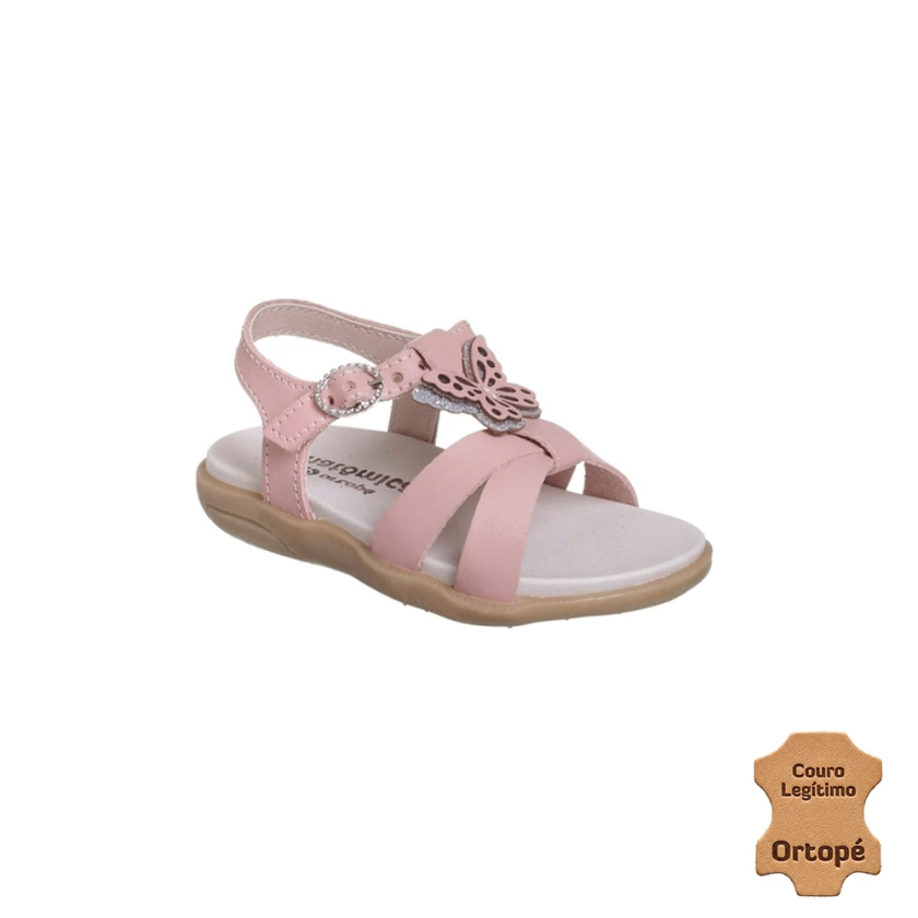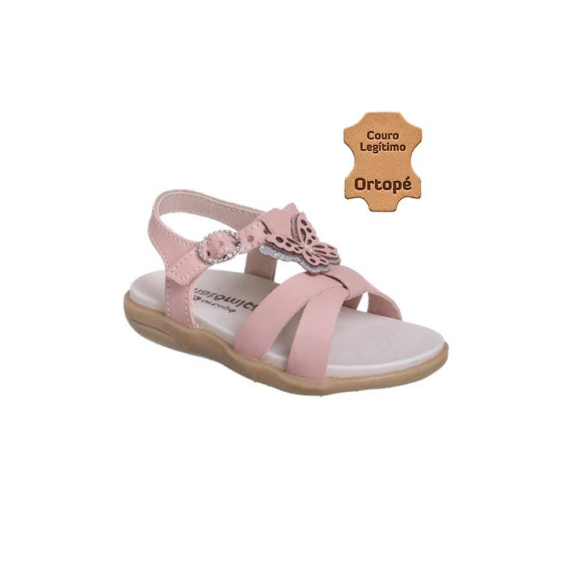 Sandália Infantil Feminina Ortopé Autêntica Couro Borboleta Rosa Chá