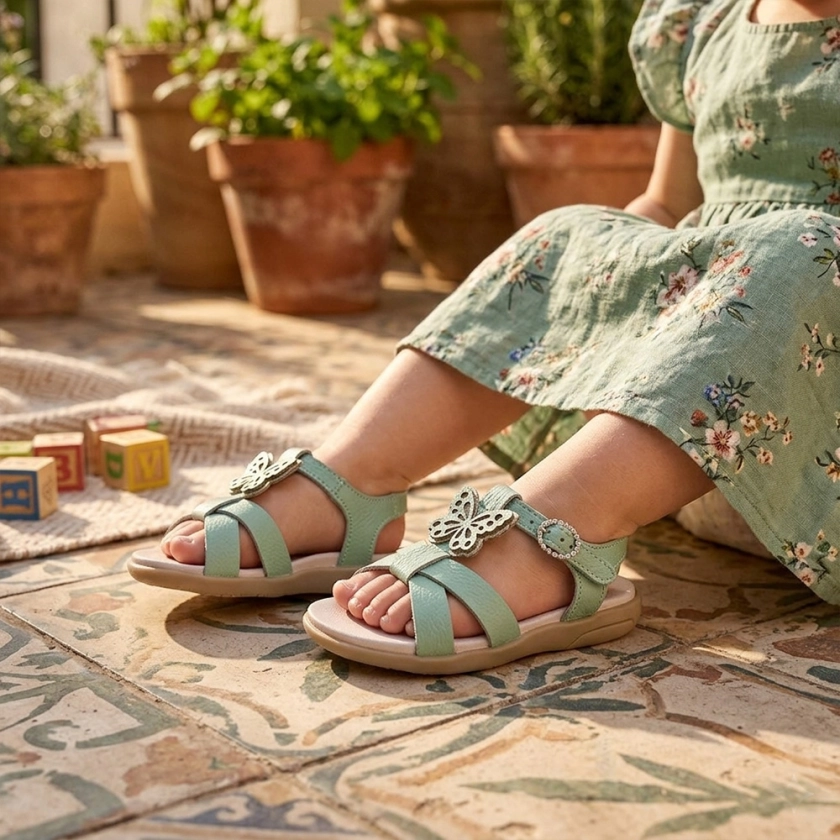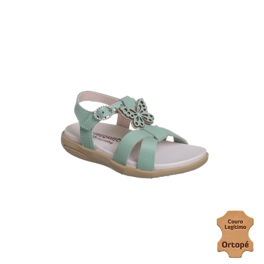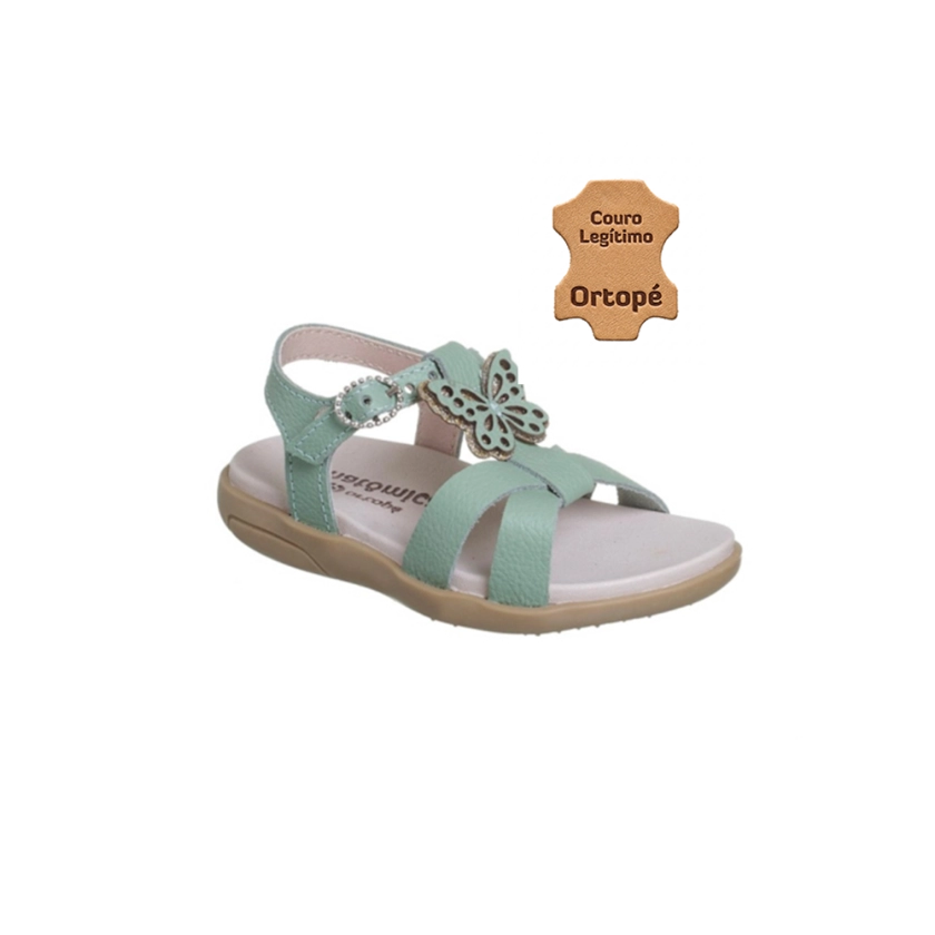 Sandália Infantil Feminina Ortopé Autêntica Couro Borboleta Verde