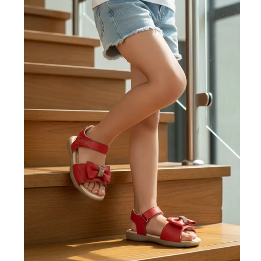 Sandália Infantil Feminina Ortopé Carinhoso Couro Laço Strass Vermelha é feita em couro, um material com excelente durabilidade e bem confortável. Com aplicação de laço com manta de strass, trazendo brilho e romantismo para a sandália de menina.