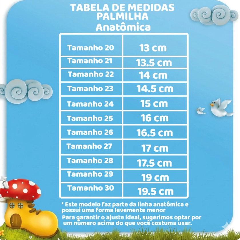 | Tamanho 22 | 14 cm |