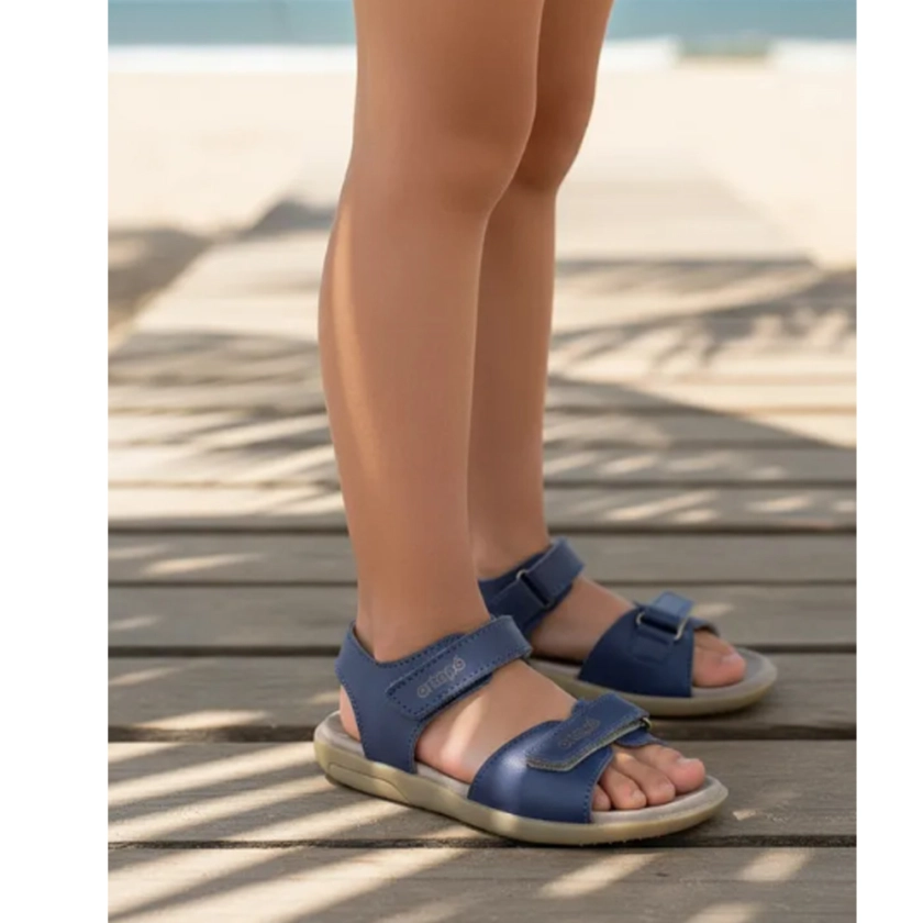 Sandália Infantil Masculina Ortopé Autêntica Papete Marinho com Fechamento Ajustável