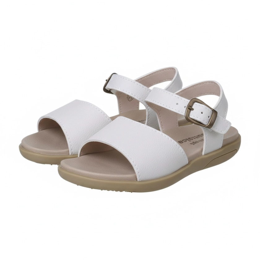 Na cor Off White, o modelo traz um visual neutro e elegante, fácil de combinar com diferentes looks infantis. Produzida em material sintético resistente, garante durabilidade e praticidade para o dia a dia.