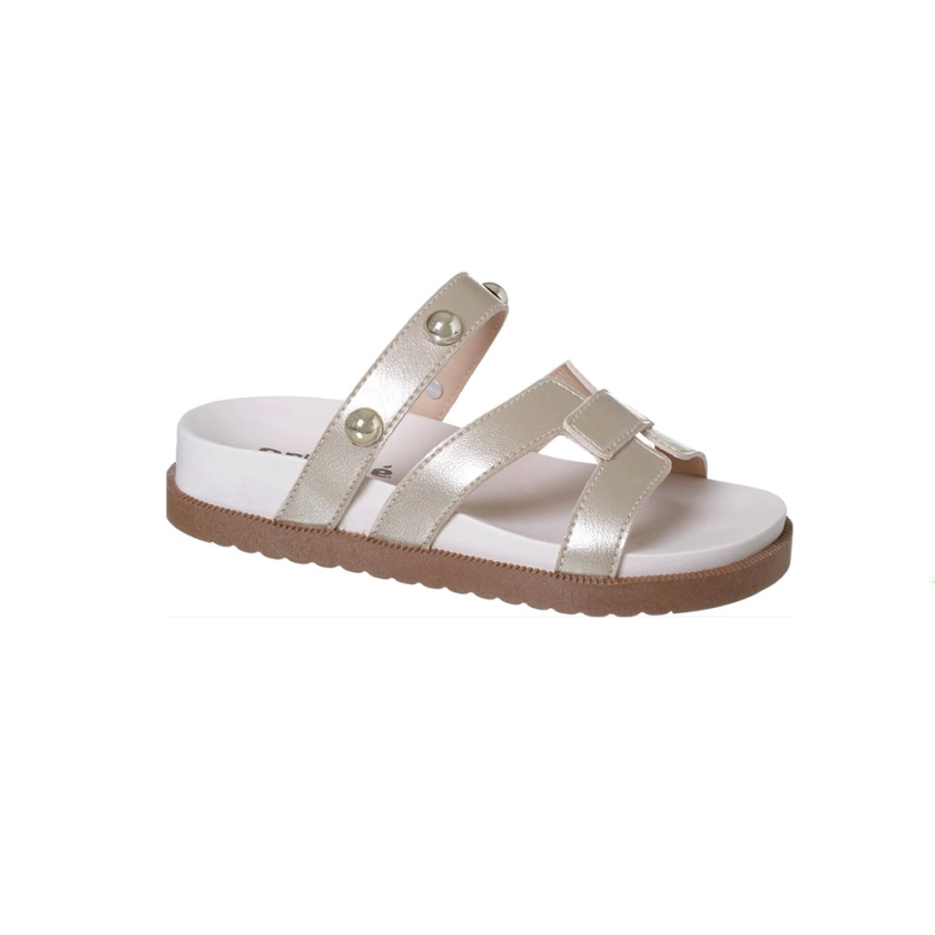 A Sandália Papete Infantil Feminina Ortopé Rebites Ouro Light é ideal para acompanhar as pequenas com muito estilo, conforto e segurança. Com um acabamento brilhante e aplicação de rebites, ela traz um visual moderno e delicado, perfeito para diversas ocasiões. Seu design funcional com calce fácil facilita o dia a dia, permitindo que a criança calce o sapato com autonomia e praticidade. O solado em TR emborrachado antiderrapante proporciona mais estabilidade e segurança, enquanto o formato anatômico se ajusta ao pé infantil, oferecendo conforto prolongado e excelente resistência para o uso diário.