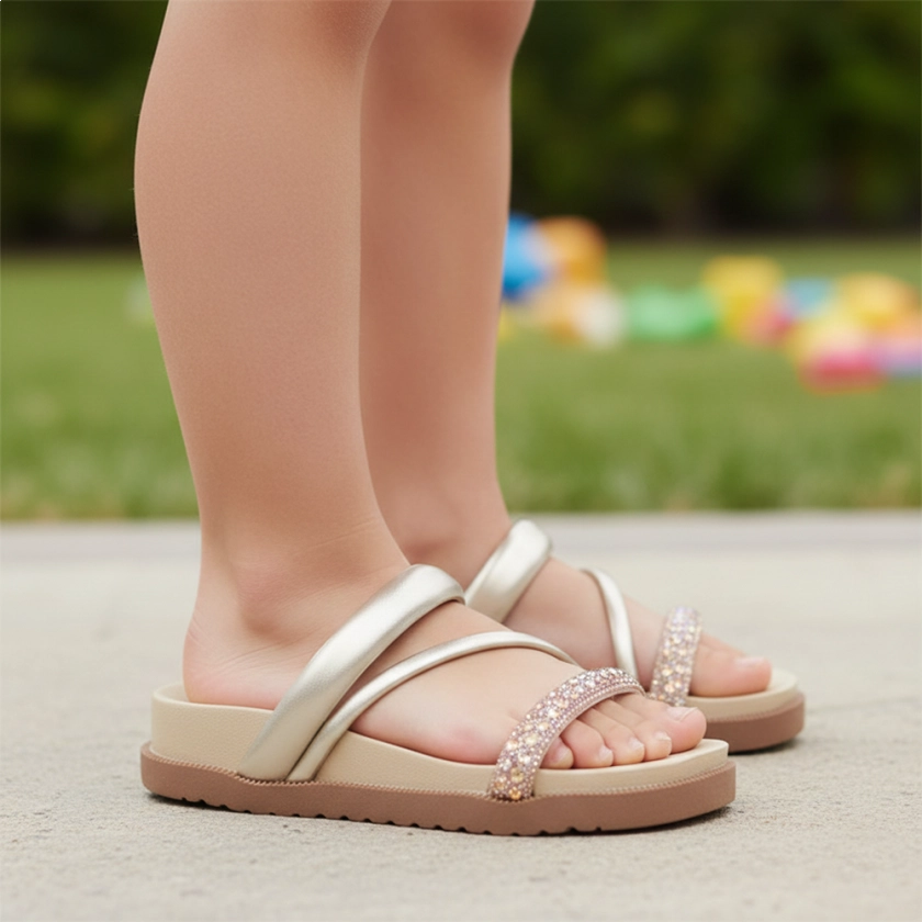A Sandália Papete Infantil Feminina Ortopé Tira Dourada Ouro Light é perfeita para quem busca um visual moderno com um toque de brilho no look das pequenas. Com tiras largas e confortáveis, a sandália se destaca pela aplicação de strass na tira frontal, deixando o modelo ainda mais encantador. O calce fácil é ideal para a rotina das crianças, oferecendo praticidade e autonomia. Já o solado em EVA leve e antiderrapante garante segurança e estabilidade em cada passo. Um modelo versátil para usar tanto no dia a dia quanto em ocasiões especiais!