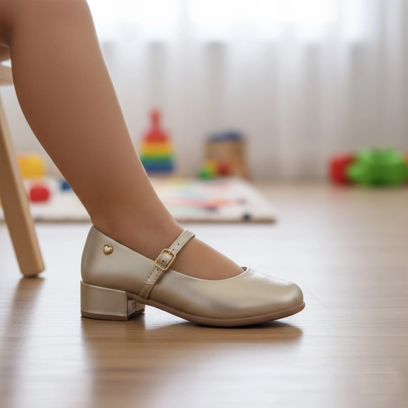 A Sapatilha Feminina Infantil Ortopé Ouro Saltinho Princesa é ideal para deixar o visual das pequenas ainda mais encantador. Com um acabamento em brilho dourado e detalhes delicados, ela é perfeita para ocasiões especiais, como festas e eventos, ou para dar um toque de elegância ao dia a dia. O saltinho discreto confere charme ao caminhar, mantendo estabilidade e conforto. Seu formato anatômico se ajusta perfeitamente aos pés infantis, garantindo conforto prolongado e durabilidade durante o uso.