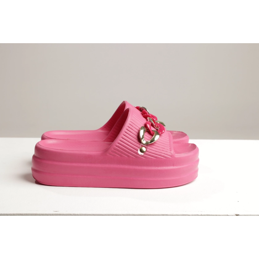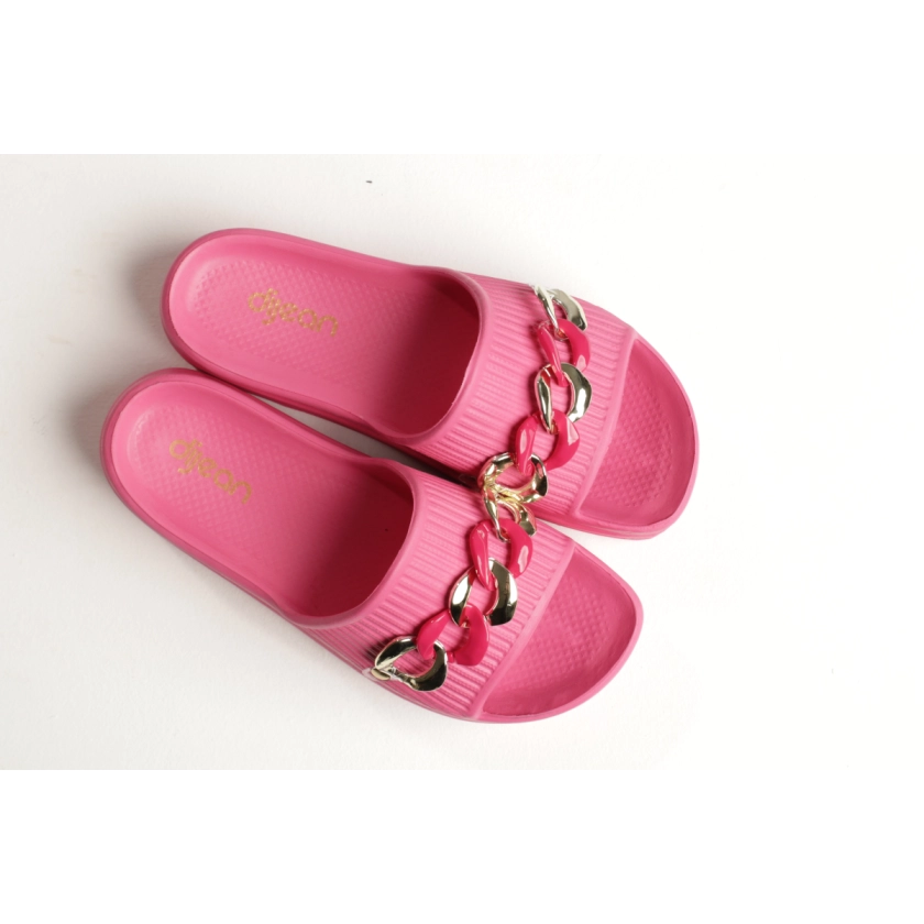O design minimalista é realçado pelo detalhe em corrente na parte frontal, trazendo um toque de moda ao visual. A sola reta com vincos antiderrapantes garante segurança e estabilidade para o uso diário.