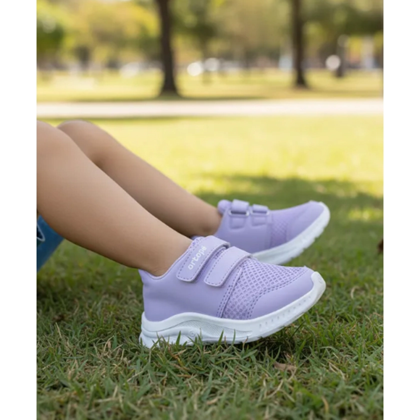 ✅ Tênis Infantil Feminino Ortopé DNA Flex Fecho Duplo Tiras Lilás com cabedal resistente, palmilha macia, fechamento prático em tiras e solado antiderrapante. Estilo, conforto e segurança em um só calçado.