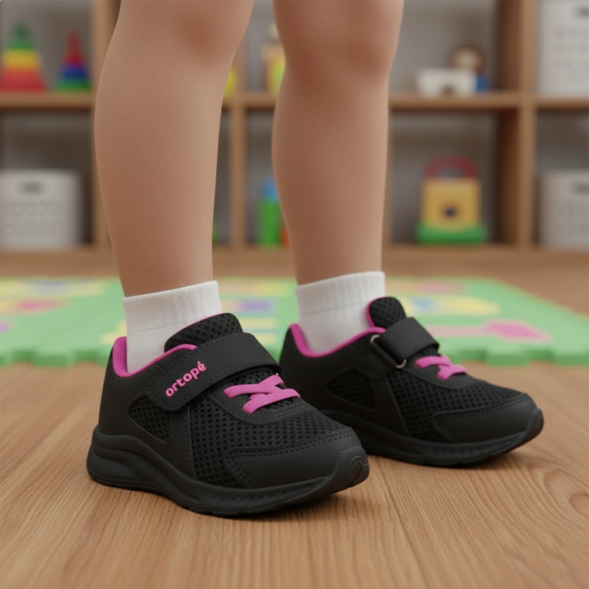 Tênis Infantil Feminino Ortopé DNA Flex Preto Pink foi pensado para o dia a dia de meninas, unindo conforto, resistência e o estilo lúdico que é a marca registrada da Ortopé. Este modelo da categoria Calçados infantis > Tênis na cor Preto traz um equilíbrio entre design e funcionalidade para acompanhar a rotina na escola, nos passeios e nas brincadeiras.