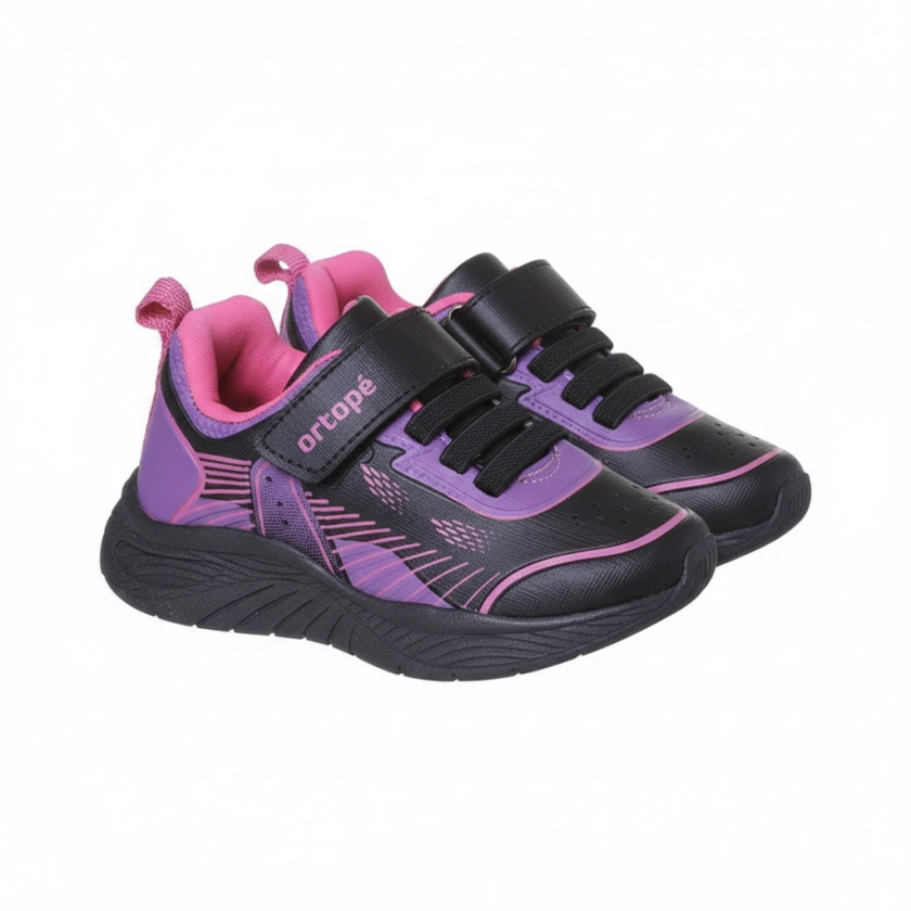 ✅ Tênis Infantil Feminino Ortopé Play Tira Aderente Preto Pink com palmilha anatômica, cabedal flexível, fechamento em velcro e solado antiderrapante. Conforto, praticidade e estilo em um só calçado.