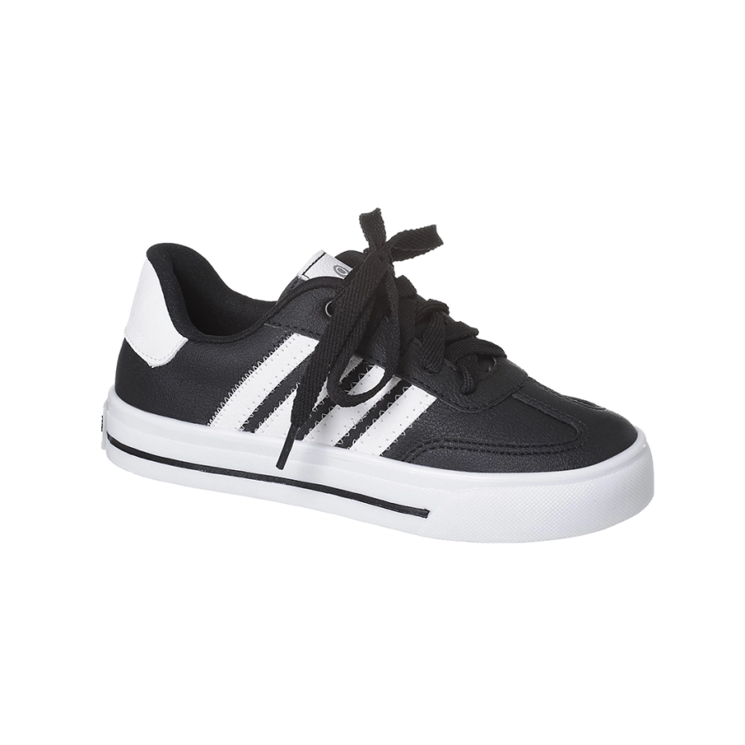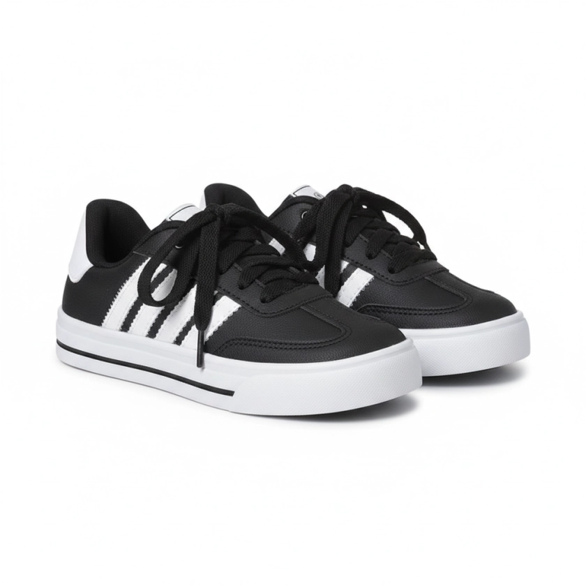 - Design Moderno e Versátil: a combinação clássica de cores branco e preto confere um visual esportivo e elegante, fácil de combinar com diversas peças do guarda-roupa infantil, do uniforme escolar aos looks de passeio.