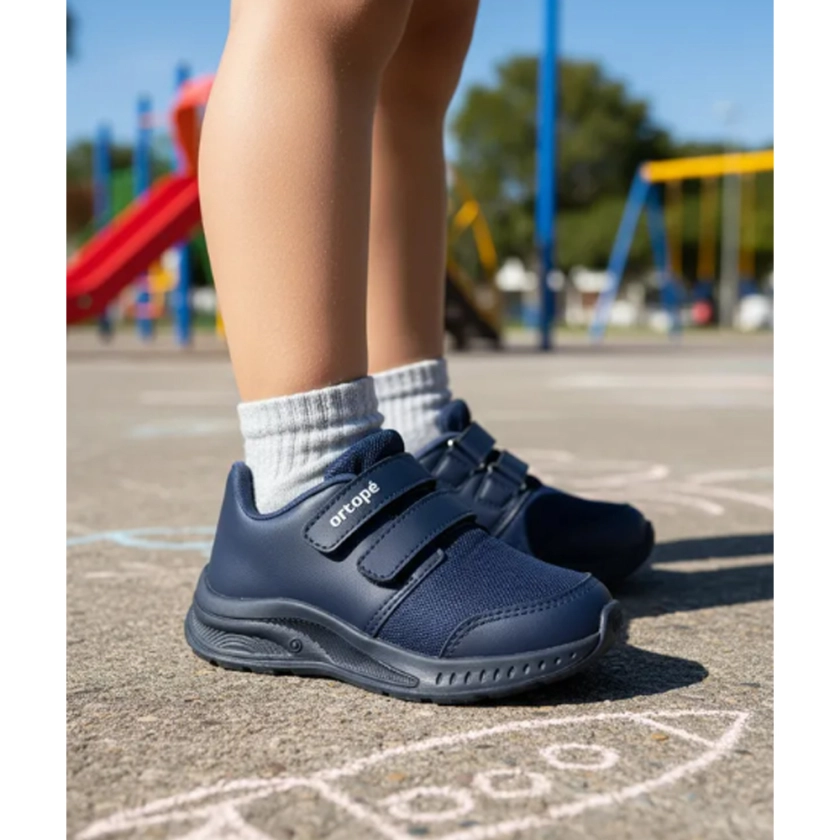 Marinho é aquela cor que nunca erra — combina com uniforme, com calça jeans, com qualquer ocasião. O DNA Flex Fecho Duplo Tiras na versão marinho une o clássico indiscutível com a tecnologia que a Ortopé coloca em cada produto: palmilha anatômica DNA Flex, velcro duplo para ajuste firme e solado resistente para aguentar tudo que a criança inventar. Para a mãe que sabe que elegância e durabilidade não precisam se excluir.