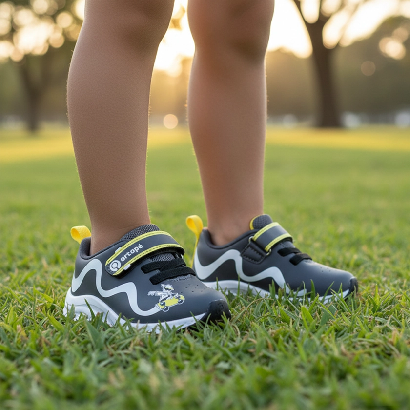 Descubra o Tênis Infantil Masculino Ortopé DNA Flex Grafite, o parceiro ideal para acompanhar cada passo do seu filho com segurança, conforto e promovendo o desenvolvimento saudável dos pés.