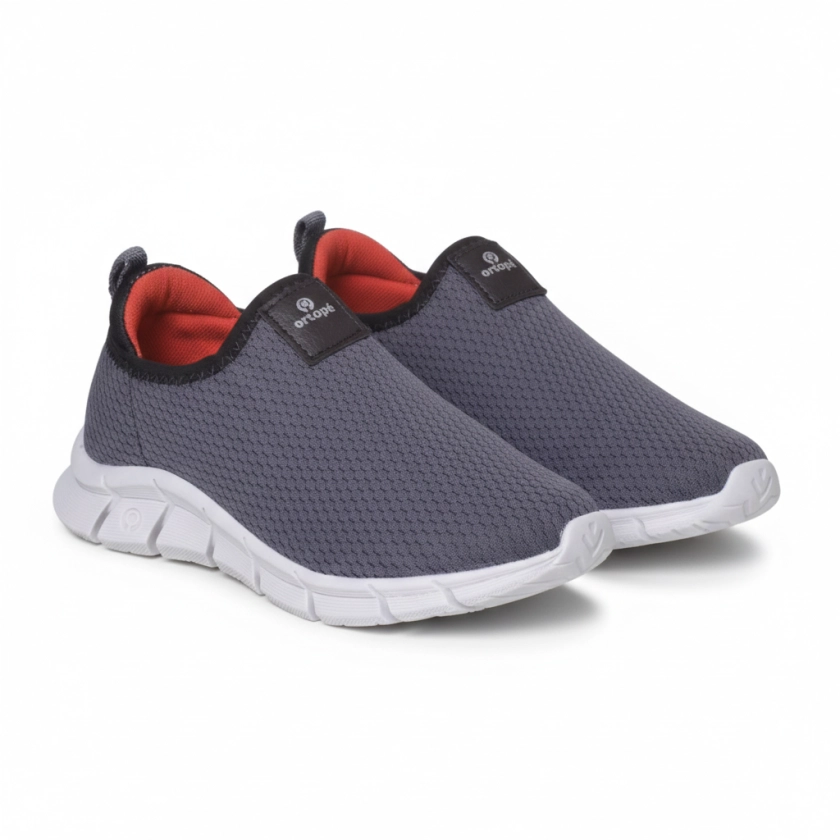 Grafite na base, vermelho no acento — uma combinação de quem não passa despercebido. O Ortopé Flex Run Calce Fácil Respirável Grafite/Vermelho une o estilo marcante com tudo que faz um bom tênis escolar: cabedal respirável para pés frescos, sistema calce fácil para manhãs tranquilas e palmilha anatômica que protege cada passinho até o fim do dia. Para o menino que quer ser notado — pelo tênis certo.
