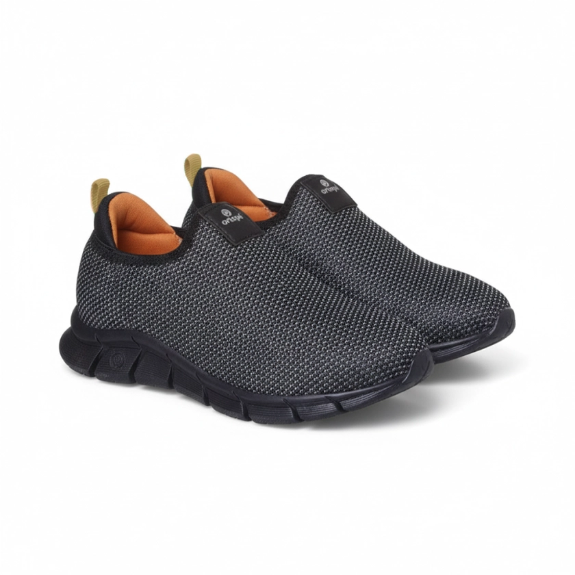 Para o menino que quer um tênis com a cara de quem corre para tudo: o Ortopé Flex Run Calce Fácil Respirável Preto/Laranja tem o visual esportivo que chama atenção e o conforto técnico que faz a diferença no recreio. O cabedal em tecido respirável mantém a temperatura certa durante as peladas e corridas, e o sistema calce fácil é aquele aliado silencioso que transforma as manhãs agitadas em routine tranquila.